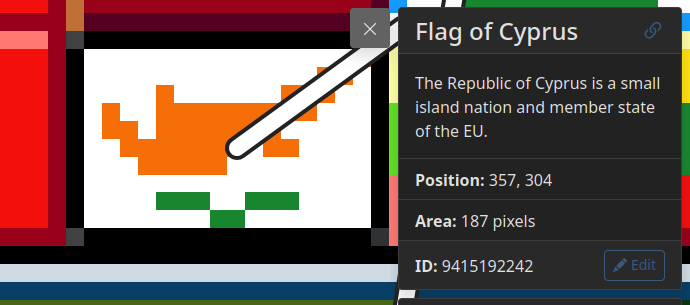 The pixel area seems to be rounded in a specific direction, not outwards. So for example the 12×18 EU member flags have the area 11×17 = 187.